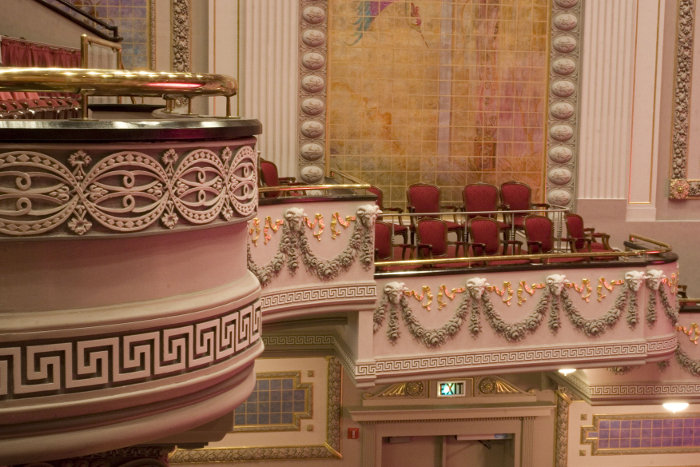 Once restoration efforts began, Ballam spearheaded the $6.5 million fund-raising effort. Hundreds of volunteers also caught the vision, donating thousands of hours of labor shoveling out the 15 tons of refuse that had accumulated backstage, uncovering the beautiful murals and decorative plaster carvings, and generally reversing decades of neglect. The stage and backstage were renovated to state-of-the-art theatrical capability and the orchestra pit was enlarged.